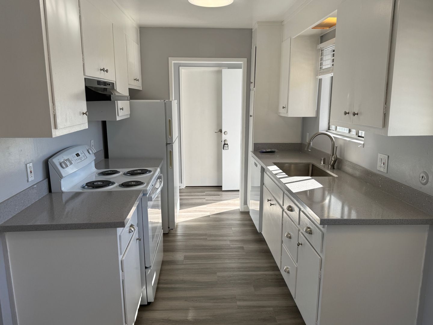 Completely remodeled 1 bedroom, 1 bath unit Downtown San Leandro! Unit has new flooring, granite counters and all new appliances! Great Downtown location within walking distance to shops, San Leandro Public Library, Bart, restaurants and banks. Gated, garage parking included and building has coin-operated on-site laundry. Please contact Jonathan to schedule a time to view the unit, 510/228-2037